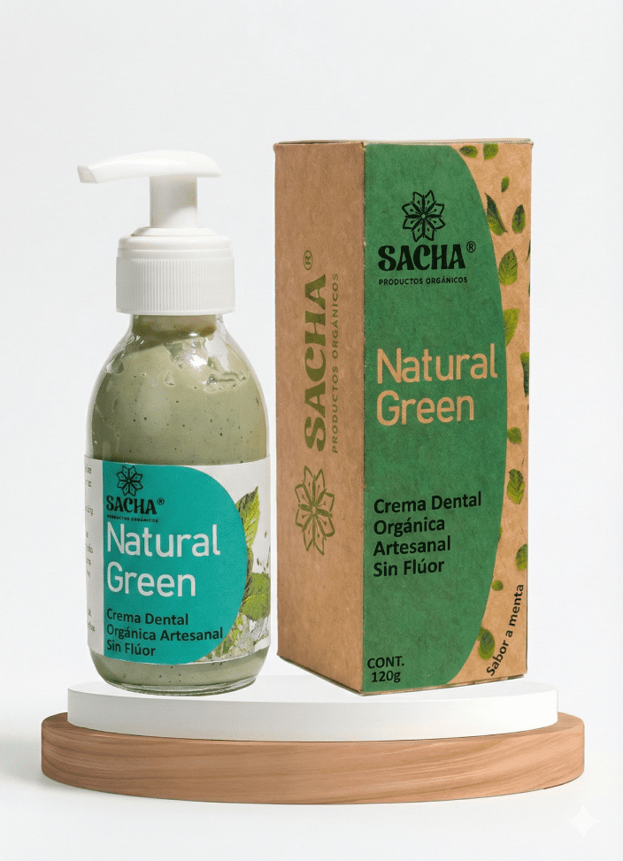 Crema Dental Orgánica Artesanal SACHA "Natural Green" - Sin Flúor, Sabor Menta (120g)Crema Dental Orgánica Artesanal SACHA «Natural Green» – Sin Flúor, Sabor Menta (120g)
